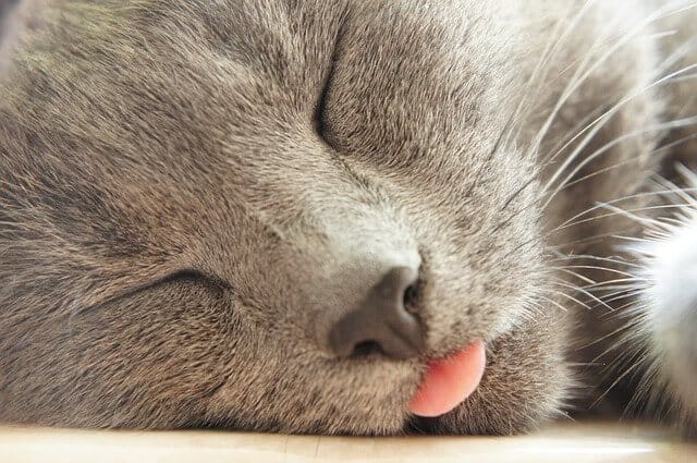 Cat sleeping with tongue out